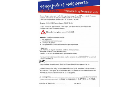 Le Stage Judo & Multisports des vacances de la Toussaint 2025 s’est déroulé dans la joie, la bonne humeur et une excellente ambiance ! Les enfants étaient nombreux à participer à cette belle semaine sportive. Au programme : 🥋 Techniques de judo ⚽🏀🤾...