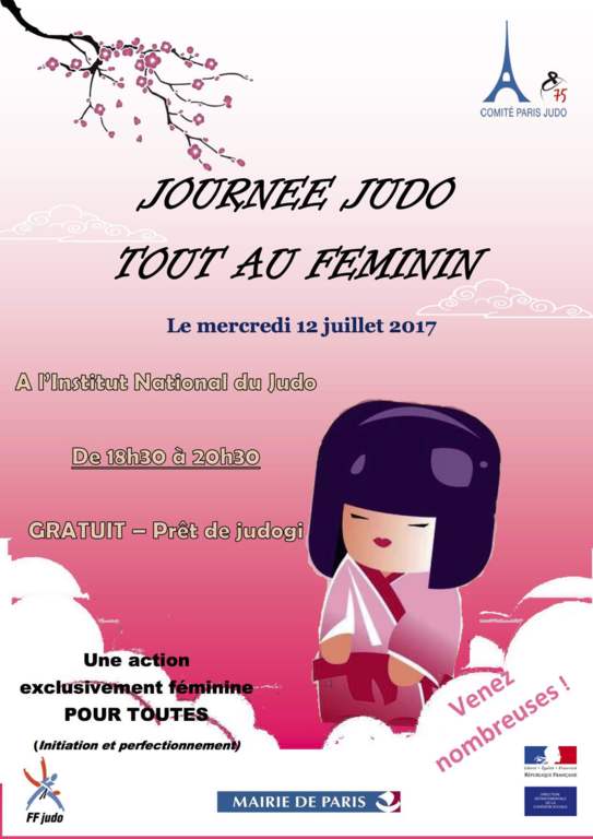 Le Comité de Paris organise une action à destination de toutes les féminines le Mercredi 12 juillet 2017 à l’Institut du Judo de 18h30 à 20h30