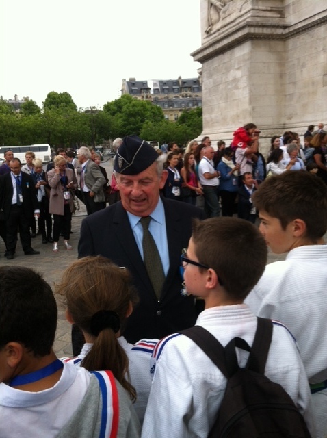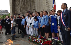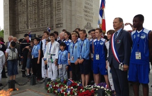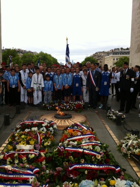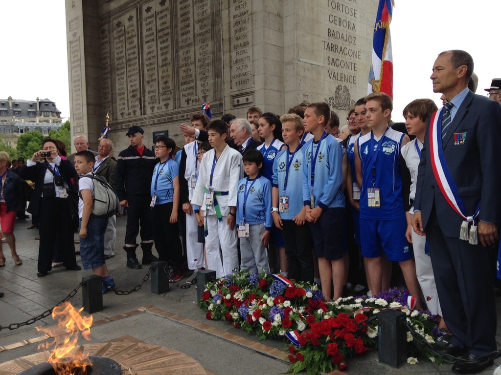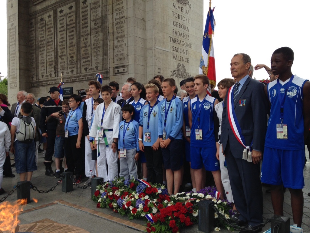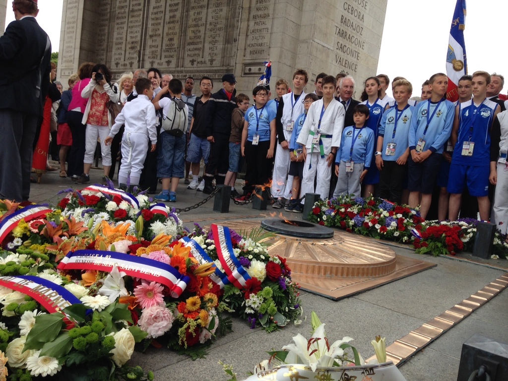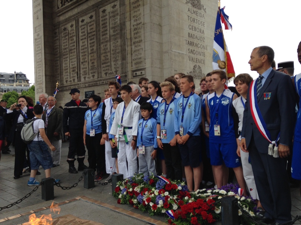 Suite à l'initiative du Comité des Yvelines des Médaillés de la Jeunesse et des Sports, la ville de Maisons-Laffitte avec l'aide de différents Clubs sportifs de notre Ville (dont la section USML Judo, Le Chanbara, le Basket et le Rugby) ont participé au ravivage de la Flamme du Soldat inconnu avec remontée des Champs Elysées samedi 20 juin dernier.