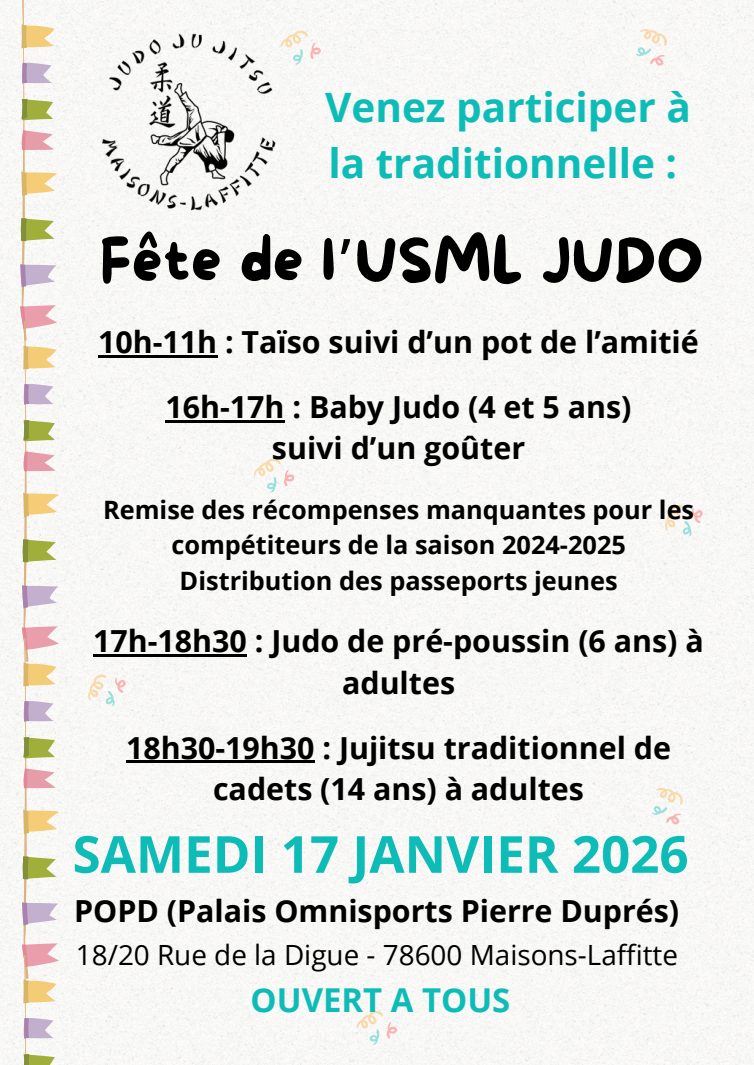 👉 Le dimanche 18 janvier 2026 sera consacré au 17ᵉ Tournoi amical de Judo de Maisons-Laffitte 🏆